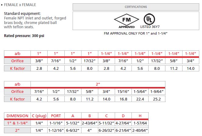 Çap : 1" ve 1 1/4" Onaylar : UL / FM